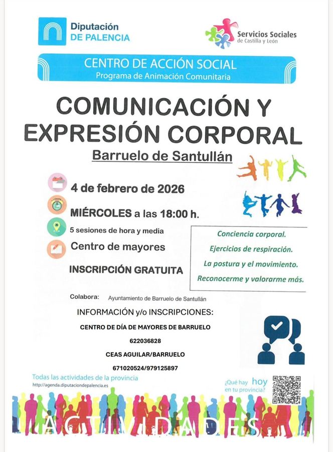 Comunicación y Expresión Corporal Miércoles 4 de febrero a las 18:00 en el Centro de DÃa de Mayores de Barruelo